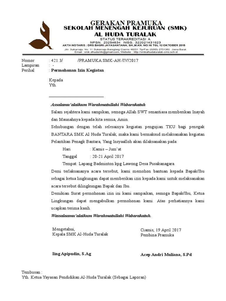 Contoh surat permohonan latihan gabungan pramuka contoh surat permohonan izin pelaksanaan pelantikan pramuka di sekolah google search surat . Untuk kesediaannya menjadi pembina himpunan mahasiswa permata papua mulai sejak surat. Berikut contoh surat permohonan latihan gabungan pramuka. Pembina pramuka putra pembina pramuka putri amalludin supiyati spd mengetahui kamabigus smp pgri 1 bandar lampung zuljana noer spd nip. Saya sbgai pembina pramuka kecewa banget، merasa dilecehkan.